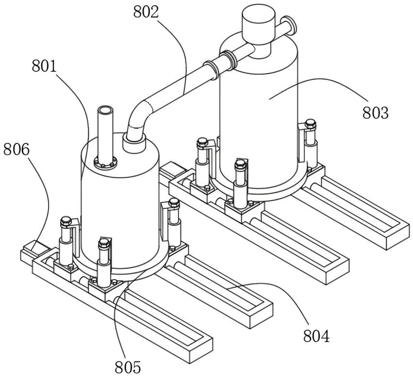 3:利用液压杆、压板和圆形底盘,起到对净化柱体和循环风机进行安装和固定的作用。摒弃了传统的螺钉紧固方式,在净化柱和循环风机的圆形底盘周边设置多个由液压杆驱动的压板。更换完成后,仅需启动液压系统,压板便会在液压杆的推动下均匀施力,将圆形底盘及其上的设备模块牢牢压紧固定,确保连接的稳定性。拆卸时,液压系统卸压,压板松开,整个模块即可解除锁定。