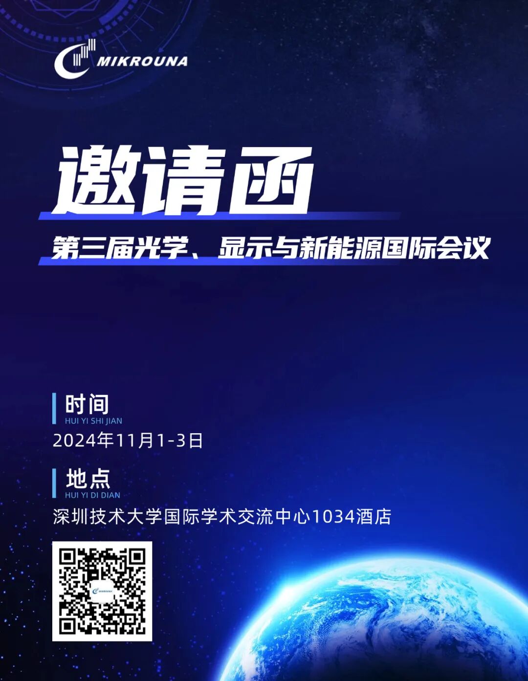 学术会议 | 米开罗那邀请您参加第三届光学、显示与新能源国际会议