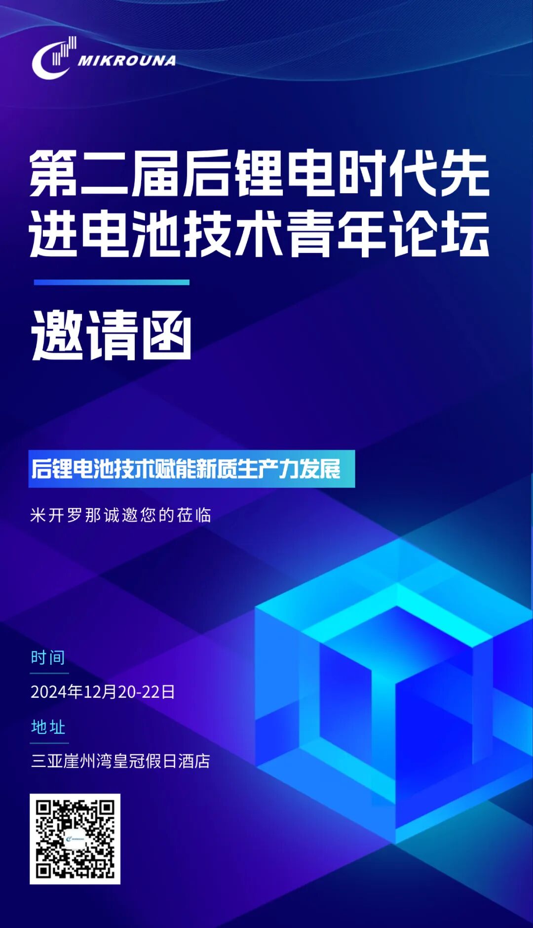 论坛以“后锂电池技术赋能新质生产力发展”为主题,聚焦后锂电时代多种先进电池技术前沿研究进展,共同探讨相关领域新能源材料研究热点、最新成果及发展方向。欢迎各界人士参加此次会议,并莅临米开罗那展位。